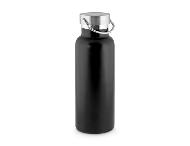Garrafa em aço inox 36% reciclado com parede dupla, isolada a vácuo. Tampa com alça de transporte em aço inox. Capacidade até 810 mL. Fornecido em caixa de oferta em papel kraft reciclado. ø78 x 289 mm | Caixa: 75 x 225 x 75 mm