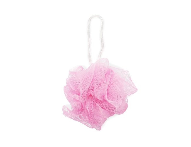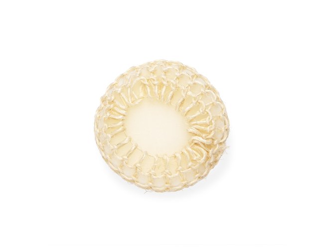 Kit banho com estilo natural envolvido em um cesto de madeira. Contém 4 itens: escova de madeira com cerdas macias, pedra-pomes, esponja redonda e uma esponja de nylon.